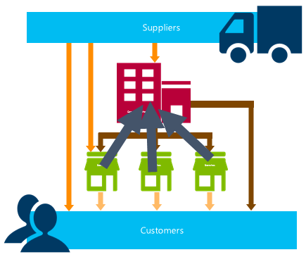 Nowadays supply chains have transformed from connected serial networks to multi-channel networks (see figure). In a serial network, a location will only ship products to the proceeding level of the chain. On the other hand, where there is a more dynamic flow of goods where by products are distributed from a single location to multiple levels, this is known as a multi-channel environment. As the number of channels increases, the complexity within the chain grows exponentially.