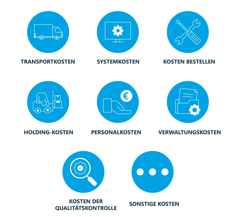 - Personalkosten (sowohl für das Verwaltungspersonal als auch für das Lagerpersonal, das den Bestand entgegennimmt, die Qualität kontrolliert und im System registriert).