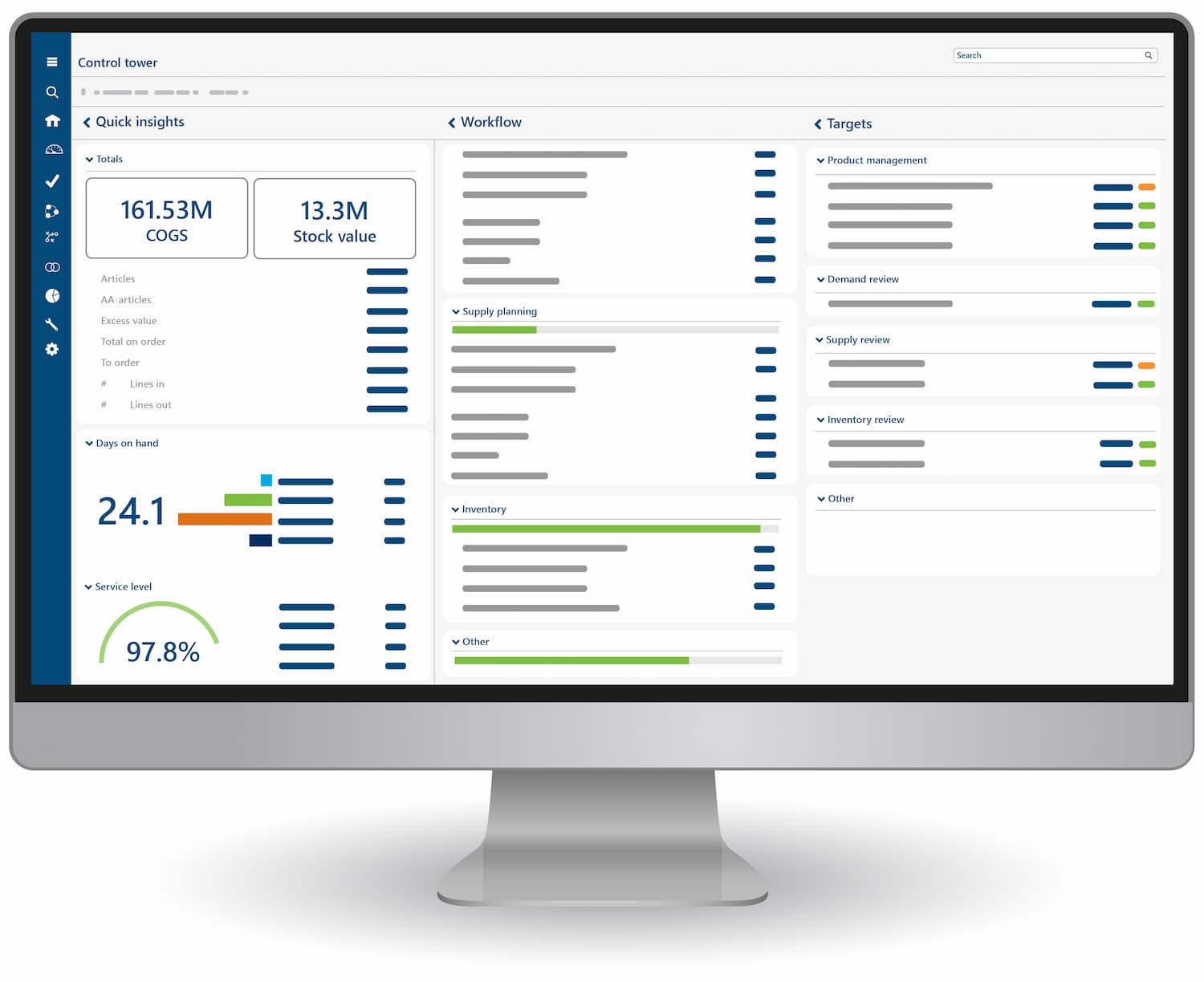 Überwachen Sie KPIs, optimieren Sie Workflows und verbessern Sie Ihre S&OP-Prozesse mit einem individuell anpassbaren Control Tower innerhalb Ihrer Supply-Chain-Plattform.