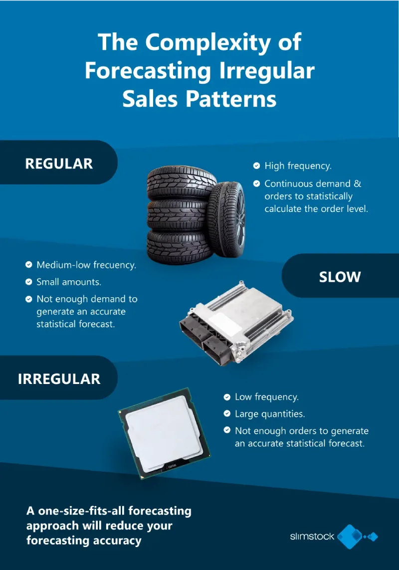 For eftermarkedsselskaber udgør størstedelen af deres sortiment langsomt bevægelige varer, hvilket komplicerer forudsigelsesprocessen.