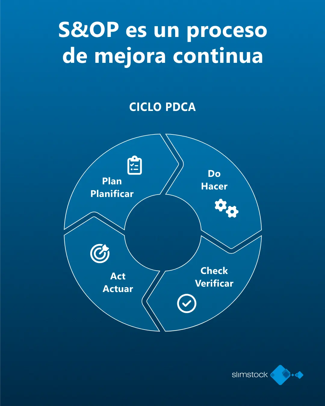 Mediante un proceso de trabajo estructurado, que se repite cíclicamente cada mes, los equipos se comunican y colaboran entre ellos para generar y mantener un único plan de demanda para toda la compañía. Esto permite que los equipos estén siempre organizados y preparados para los cambios y se puedan tomar decisiones de forma ágil y rápida.