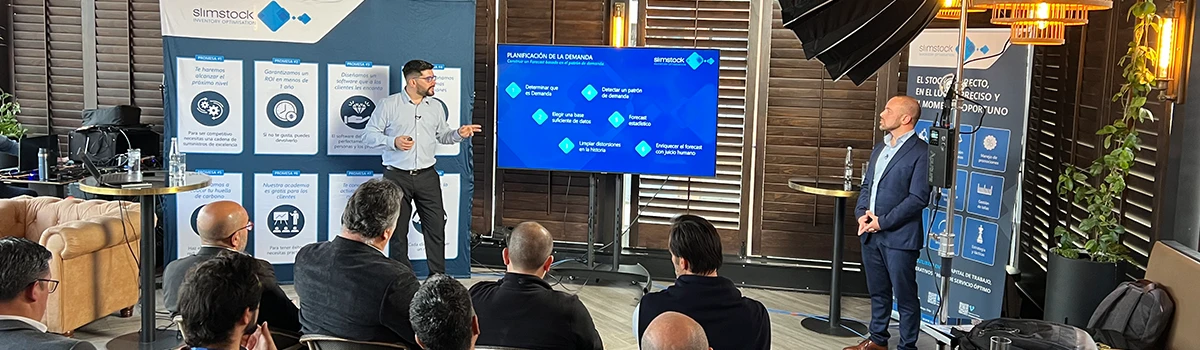 Con un roof top con vista panorámica a Santiago y aforo completo, terminamos con éxito el primer after office para prospectos en Slimstock Chile, con el objetivo de entregar conocimiento, afiatar lazos y crear momentos de networking entre los expertos en Supply Chain. En este evento, titulado “Tendencias, desafíos y soluciones para una cadena de suministro exitosa”, nuestro Manager de Pre- Sales Christian Martin y Juan Manuel Oliveira, Pre-Sales Consultant, dieron cátedra sobre el futuro y alternativas para superar las emergentes dificultades.