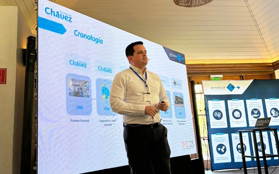 Mediante su presentación, Leonardo y Juan Carlos nos llevaron a través de la notable travesía de Farmacias Chávez S.A, no solo enfrentando con determinación los desafíos, sino también evolucionando y adaptándose de manera excepcional a circunstancias cambiantes. Esta trayectoria llevó a la empresa, en sus 35 años de historia, a convertirse en una de las cadenas farmacéuticas más importantes de Bolivia, con 104 sucursales y notables mejoras operativas respaldadas por la implementación estratégica del Software Slim4.