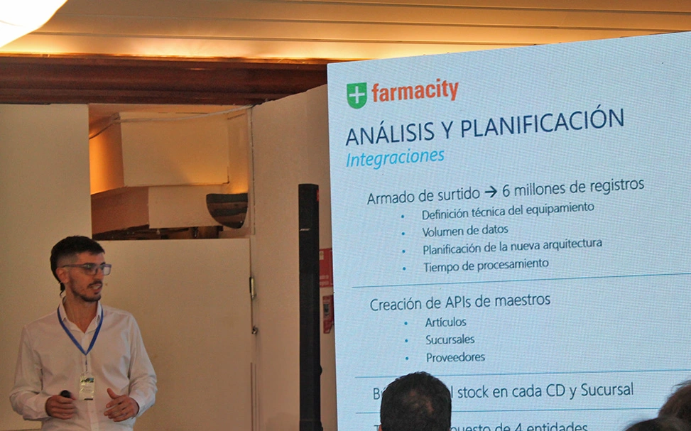 En esta presentación, Mariano Devito, Líder de IT para Supply Chain, nos sumergió en la historia de Farmacity. Posteriormente, Walter Eguigorry, Project Manager se encargó de explicarnos las etapas clave del proyecto, desde el desafío inicial hasta el análisis, planificación, creación de una base intermedia, e implementación y refinamiento del Software Slim4. Por su parte, Ariel Campenni, Subgerente de Ingeniería y Proyectos Logísticos, detalló los desafíos inherentes a la cadena de suministro.