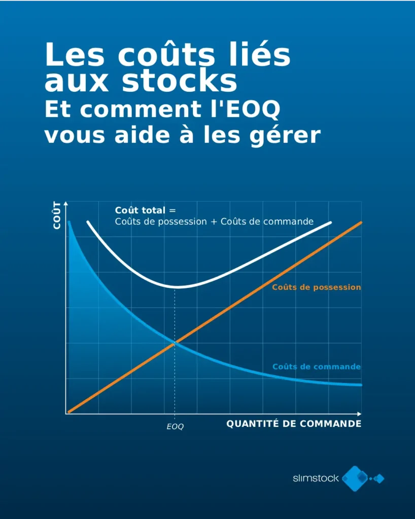 C’est là qu’intervient l’EOQ (Economic Order Quantity). Cette formule, simple mais puissante, vise à équilibrer ces deux types de coûts. Commander trop souvent fait exploser les coûts de passation. Commander trop augmente les coûts de possession. L’EOQ vous aide à trouver le juste milieu : la quantité qui minimise le coût total du stock.