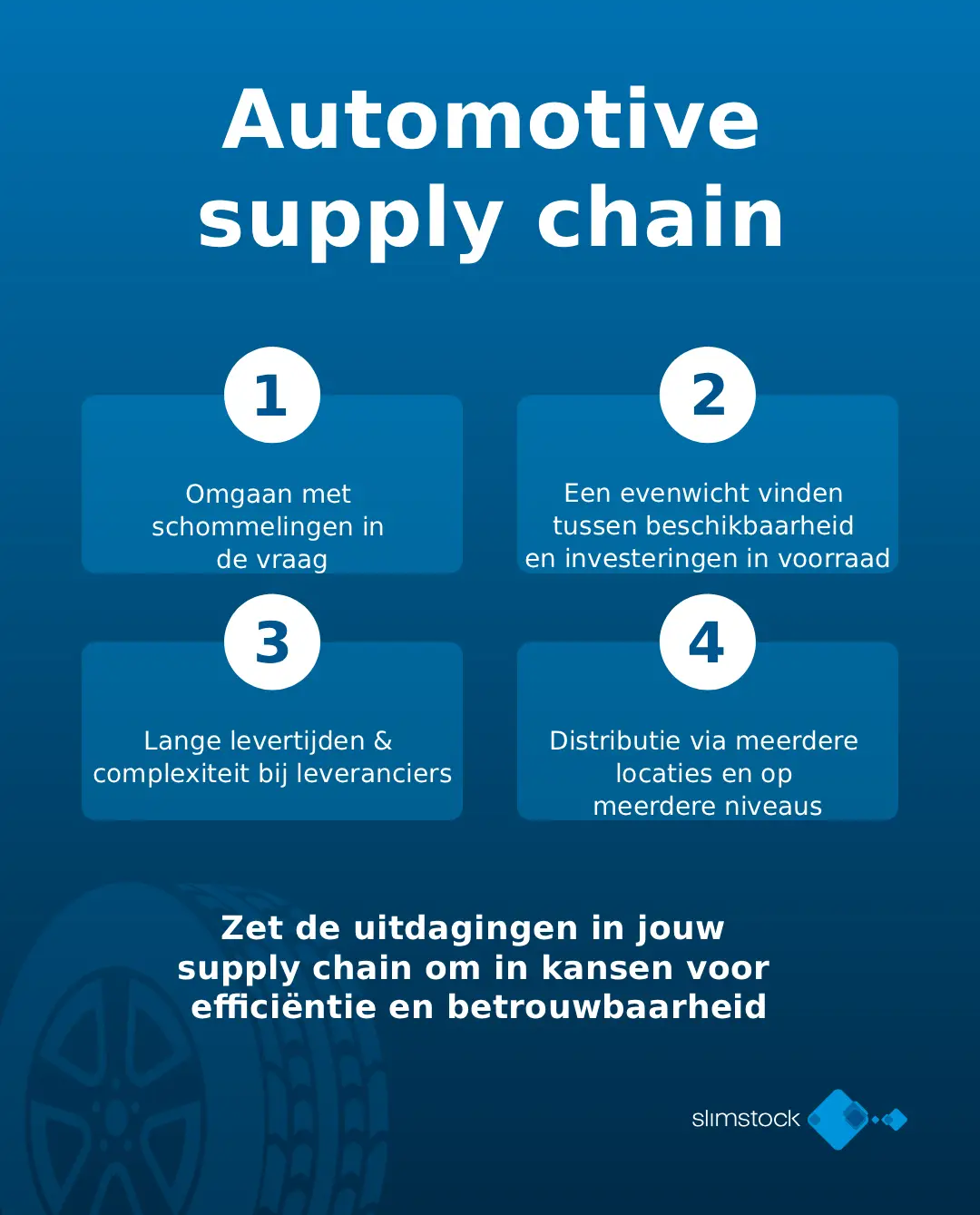 Slim4 biedt een uitgebreide reeks mogelijkheden die speciaal zijn ontworpen om de complexiteit en operationele druk van toeleveringsketens voor auto’s en reserveonderdelen aan te pakken.