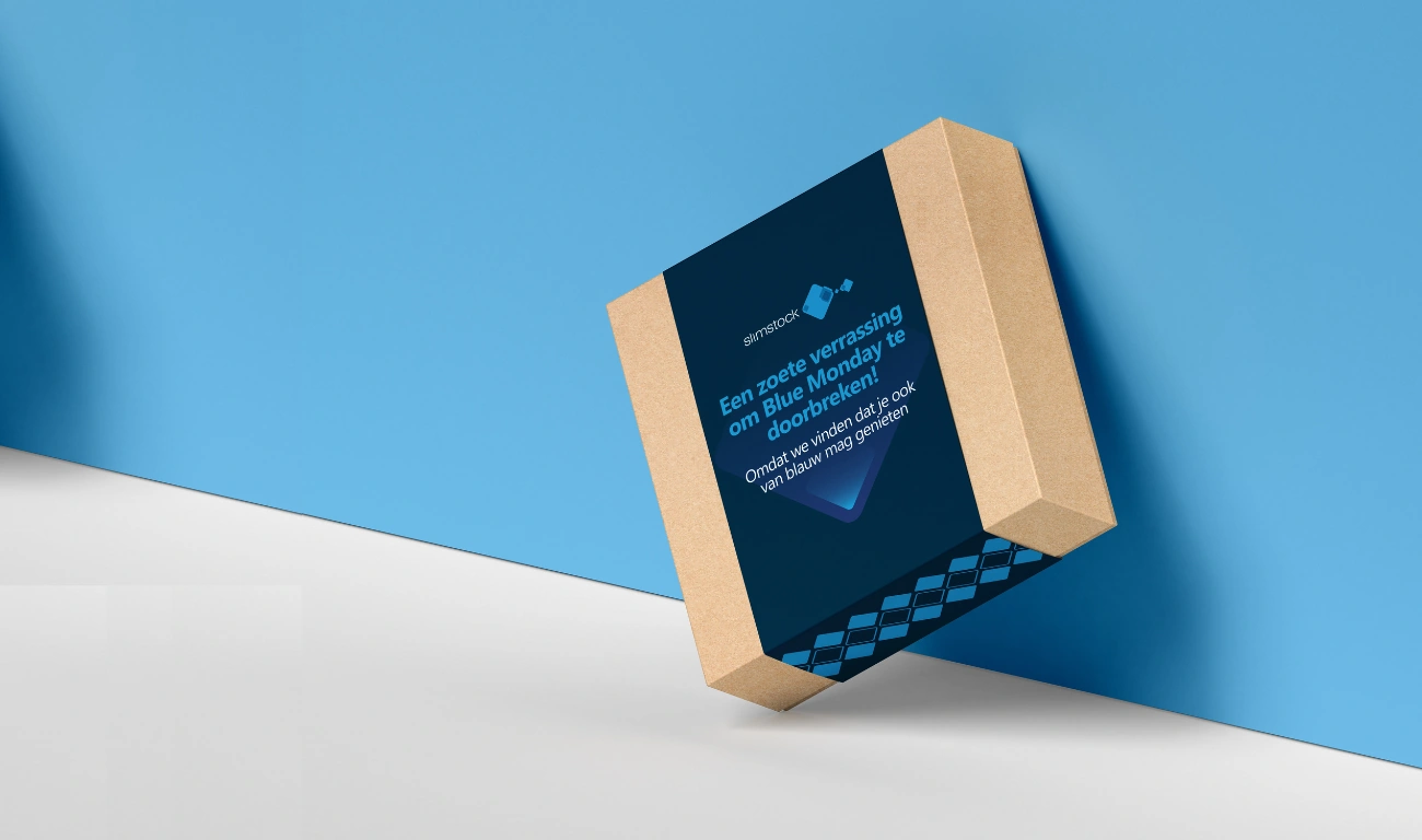 Om Blue Monday een positieve draai te geven, ontvangen alle Nederlandse klanten deze maandag een zoete verrassing per post, die ze vandaag samen met het hele team kunnen delen. Omdat we vinden dat je ook van blauw mag genieten. Dit kleine gebaar is bedoeld om hun dag op te fleuren en te laten zien dat Slimstock altijd aan zijn klanten denkt, zelfs op de ‘meest sombere dag’ van het jaar.