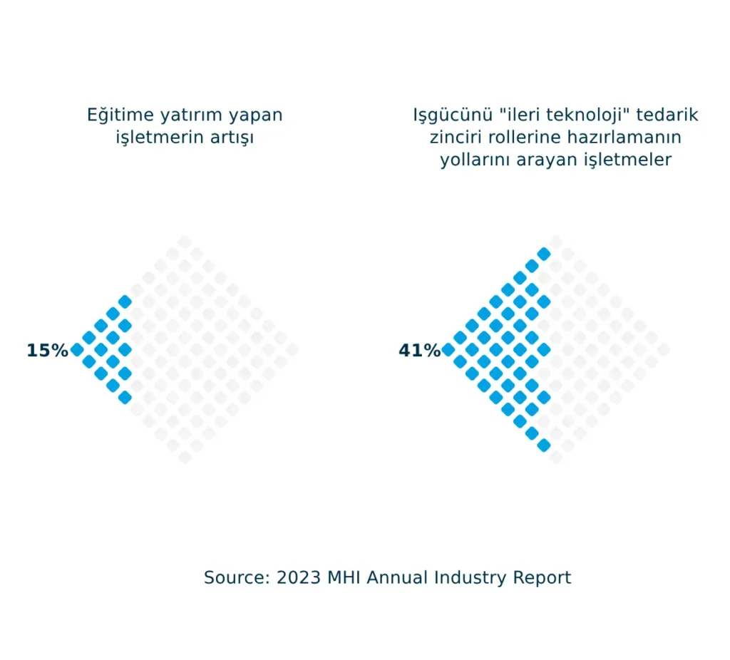 Belki de bu yüzden eğitim programlarına yatırım yapan şirketlerde %15’lik bir artış oldu. Şirketlerin %41’i ise işgücünü “ileri teknoloji” tedarik zinciri rollerine hazırlamanın yollarını arıyor.
